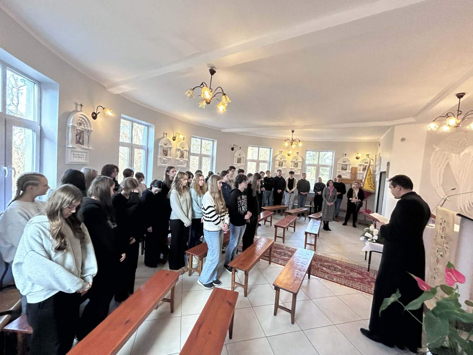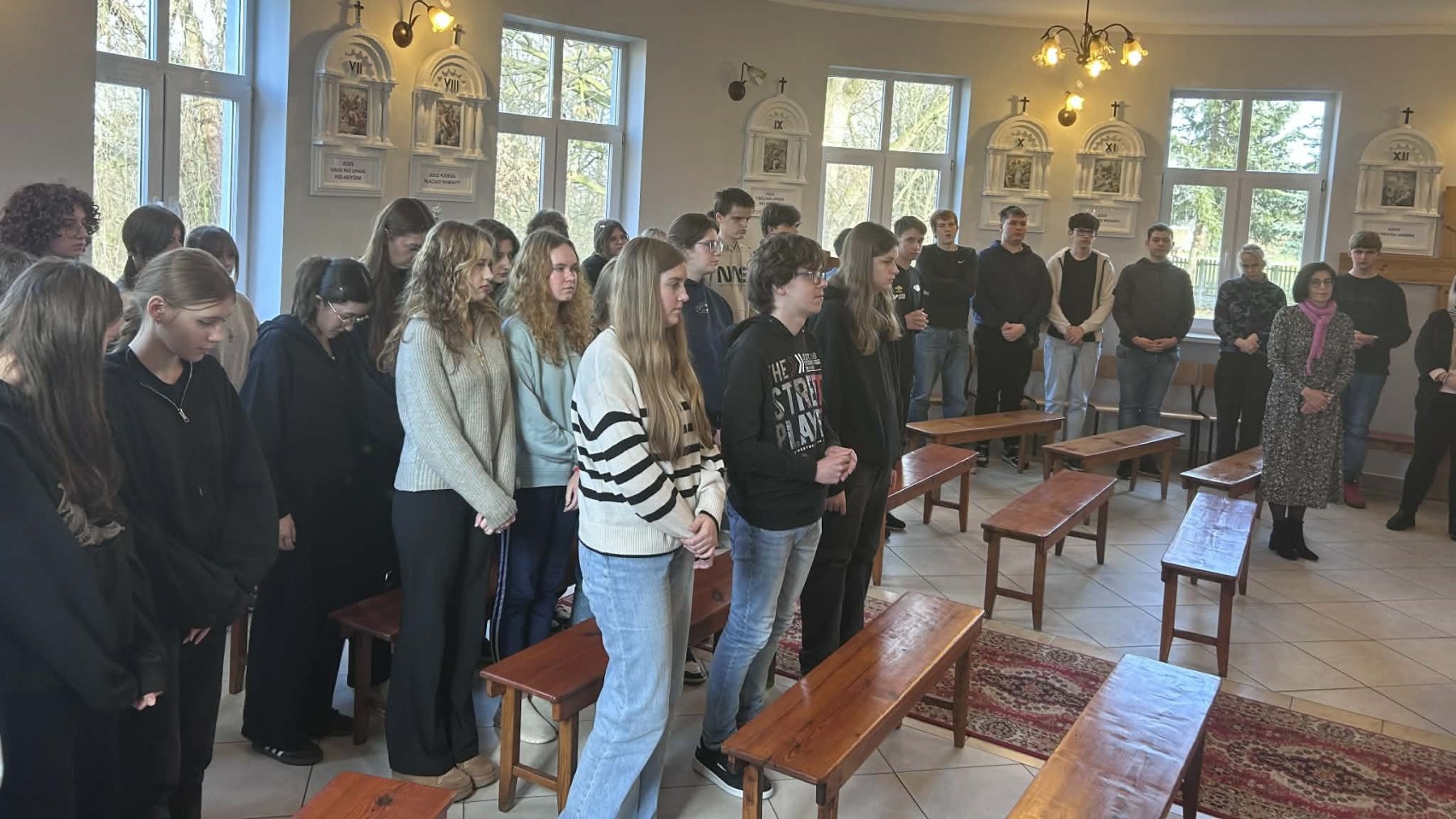 Dziś rano młodzież naszej szkoły zebrała się w kaplicy na wspólnej modlitwie adwentowej. Nabożeństwo poprowadził ks. Michał, który podzielił się rozważaniem do dzisiejszej Ewangelii o domu zbudowanym na skale. Kapłan podkreślił, jak ważne są solidne fundamenty w naszym życiu – wartości, które pomagają nam wytrwać i podejmować mądre decyzje.