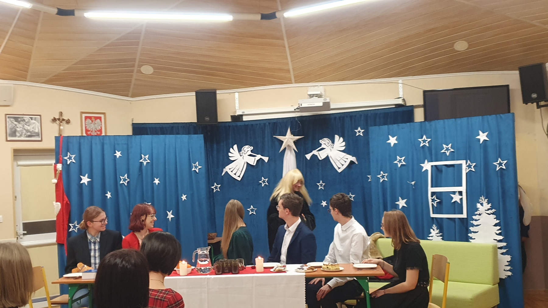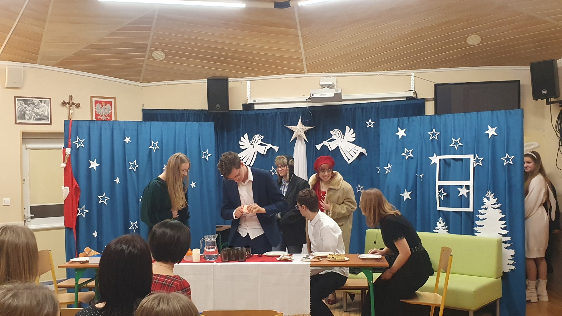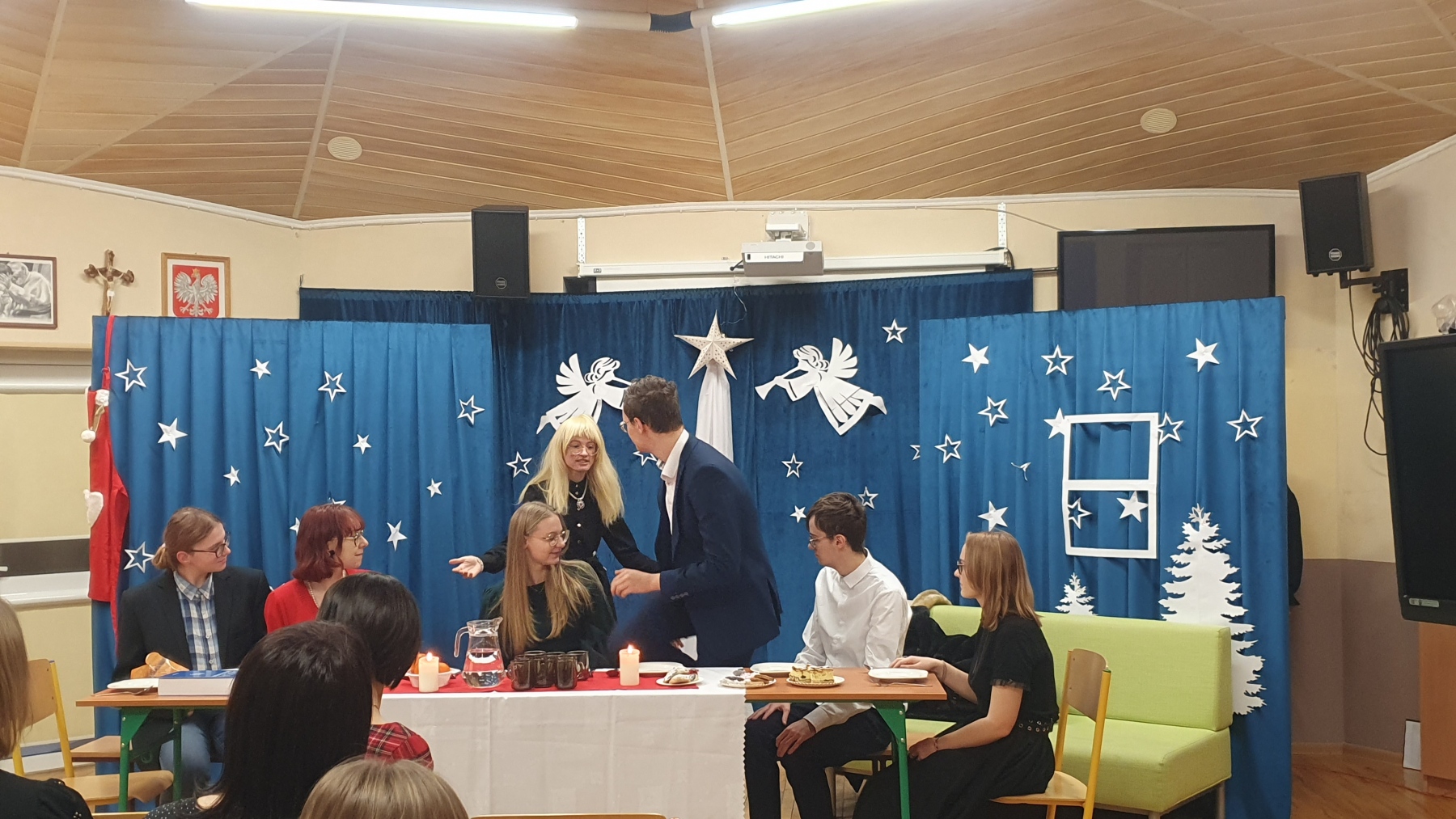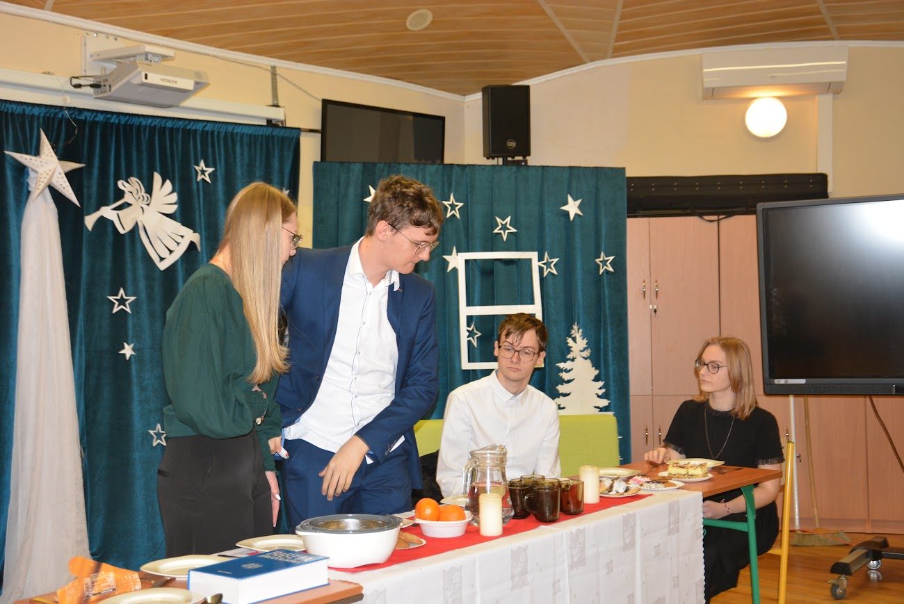 21 grudnia, w czwartek z okazji Swiąt Bożego Narodzenia nasza młodzież przedstawiła Jasełka. Było to bardzo ciekawe przedstawienie, które pokazało, że pomimo naszych niedoskonałości, mamy i powinniśmy mieć otwarte serca na drugiego człowieka, a w szczególności na tych, którzy są w różnych potrzebach. Piękna charakteryzacja, perfekcyjnie odtwarzane role, wprowadziły nas w atmosferę Świąt i skłoniły do cennych refleksji.