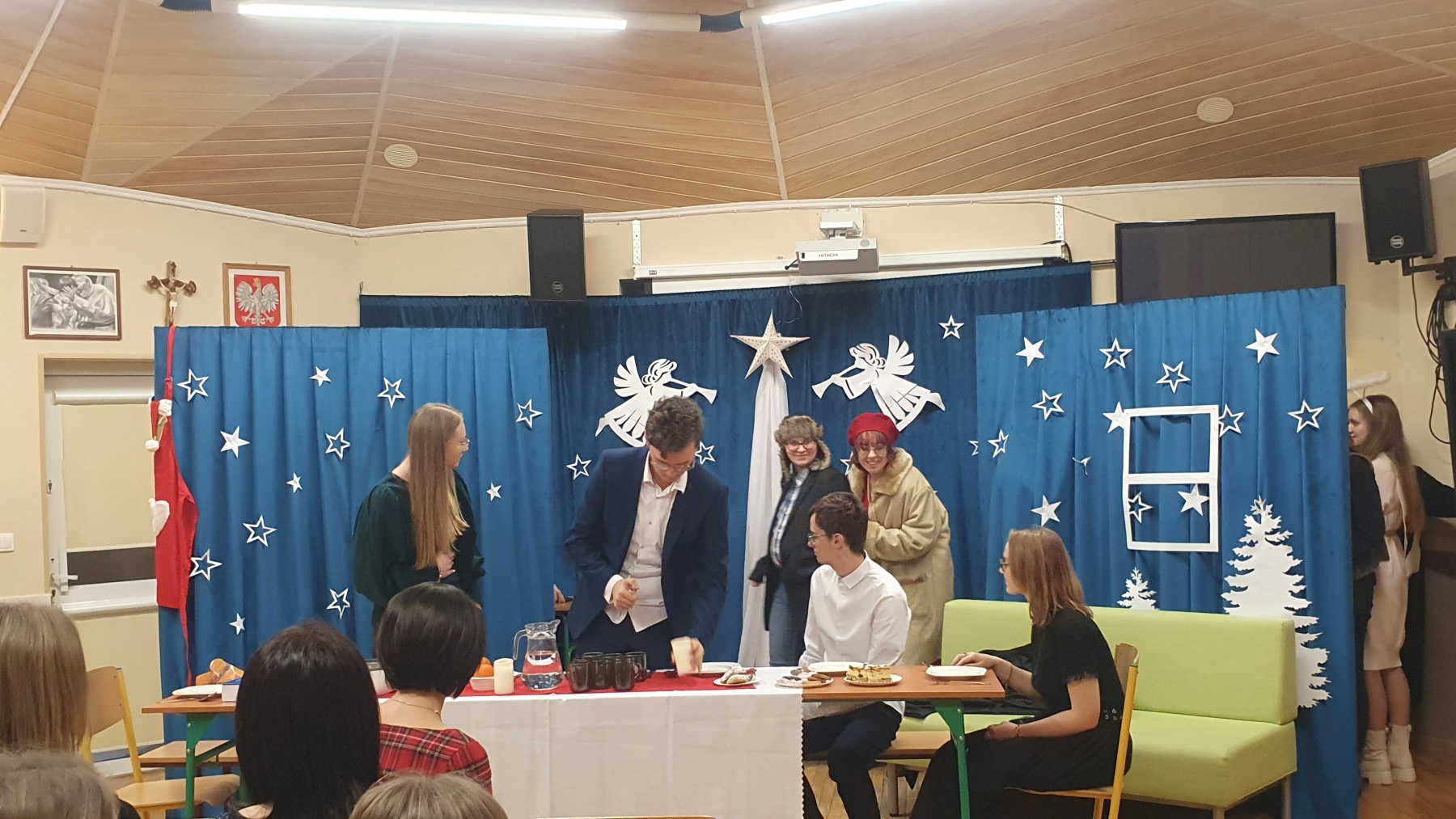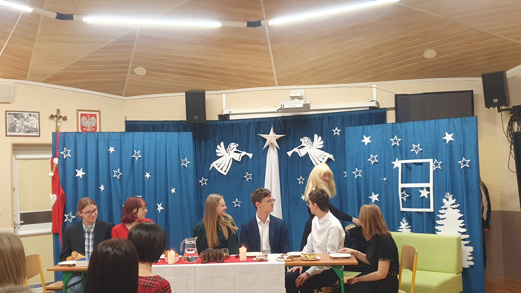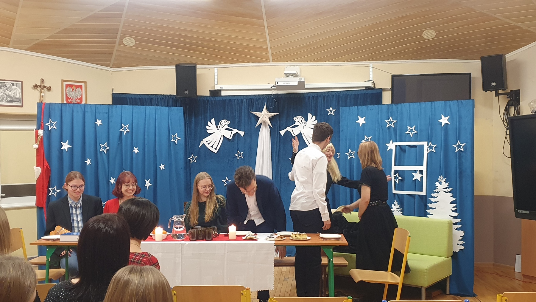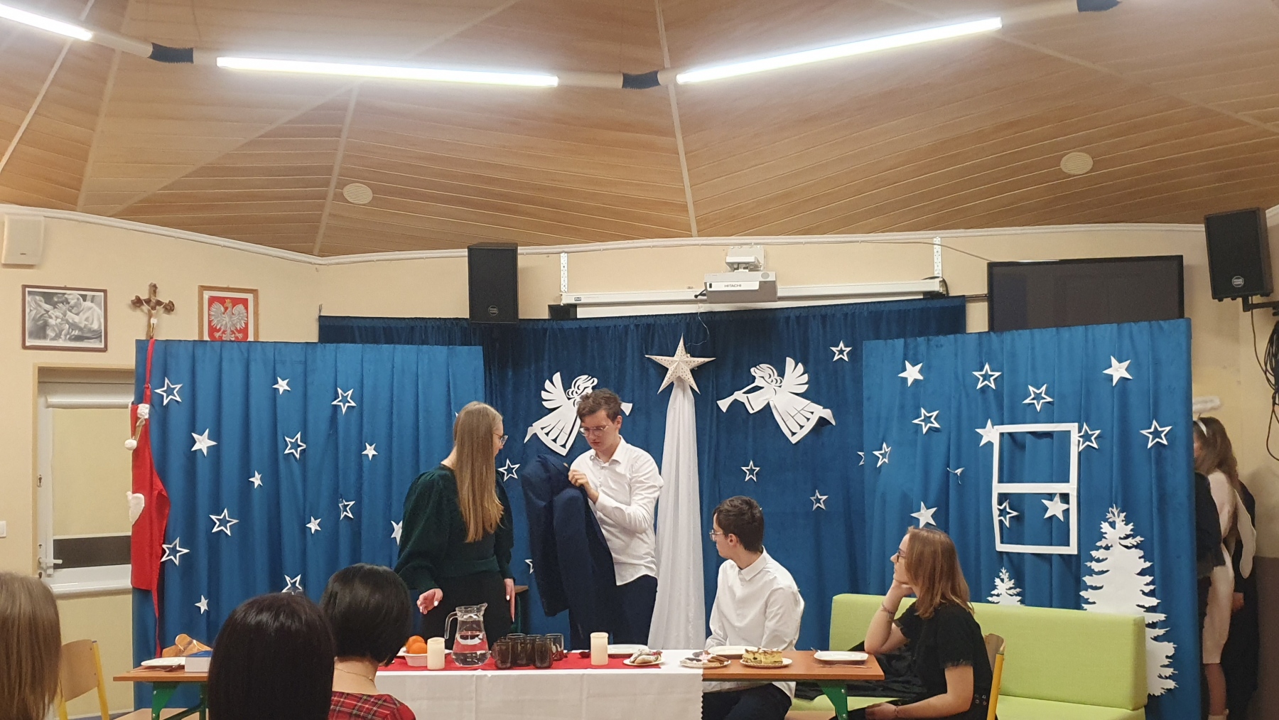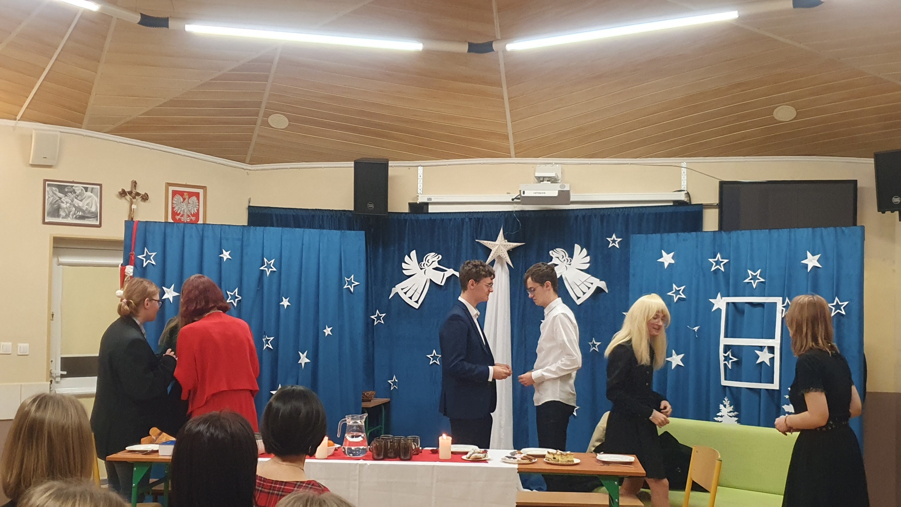 21 grudnia, w czwartek z okazji Swiąt Bożego Narodzenia nasza młodzież przedstawiła Jasełka. Było to bardzo ciekawe przedstawienie, które pokazało, że pomimo naszych niedoskonałości, mamy i powinniśmy mieć otwarte serca na drugiego człowieka, a w szczególności na tych, którzy są w różnych potrzebach. Piękna charakteryzacja, perfekcyjnie odtwarzane role, wprowadziły nas w atmosferę Świąt i skłoniły do cennych refleksji.