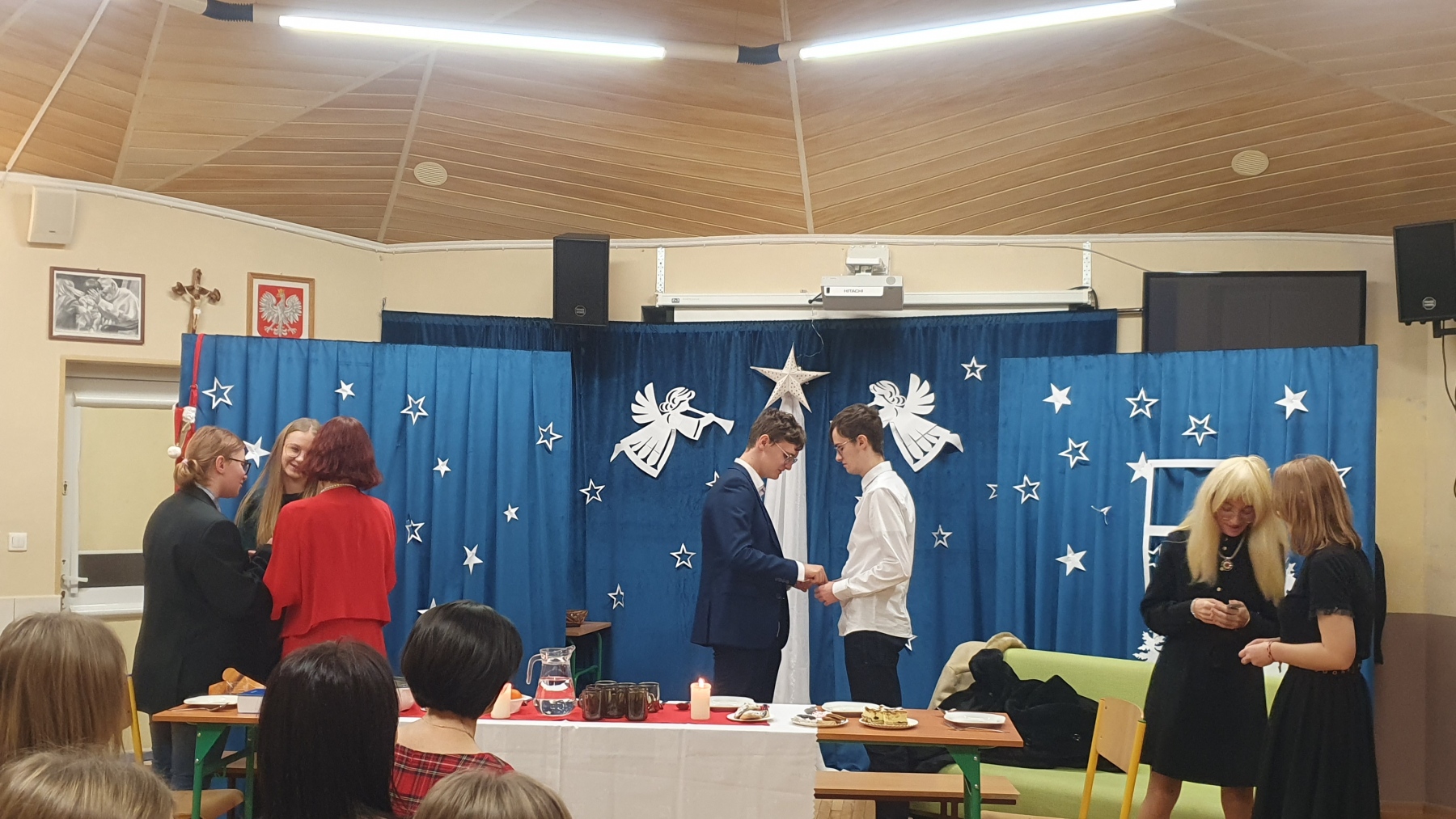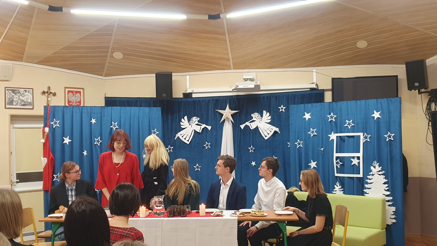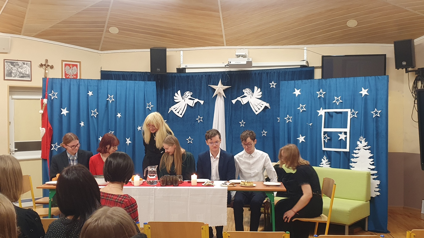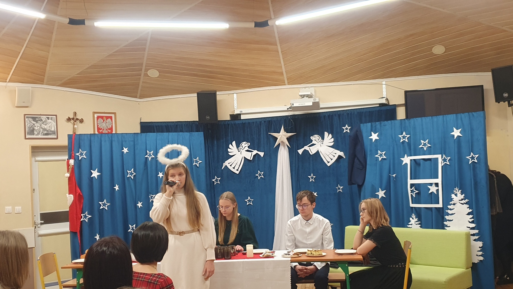 21 grudnia, w czwartek z okazji Swiąt Bożego Narodzenia nasza młodzież przedstawiła Jasełka. Było to bardzo ciekawe przedstawienie, które pokazało, że pomimo naszych niedoskonałości, mamy i powinniśmy mieć otwarte serca na drugiego człowieka, a w szczególności na tych, którzy są w różnych potrzebach. Piękna charakteryzacja, perfekcyjnie odtwarzane role, wprowadziły nas w atmosferę Świąt i skłoniły do cennych refleksji.
