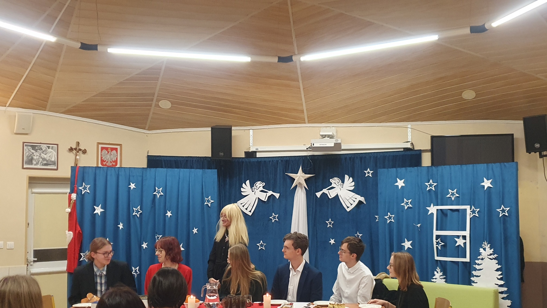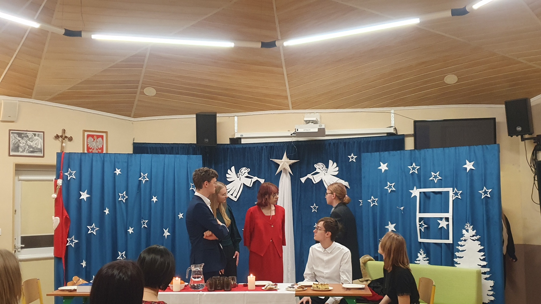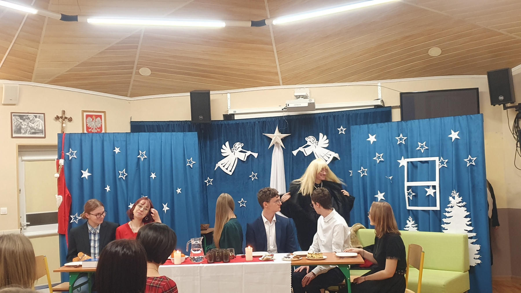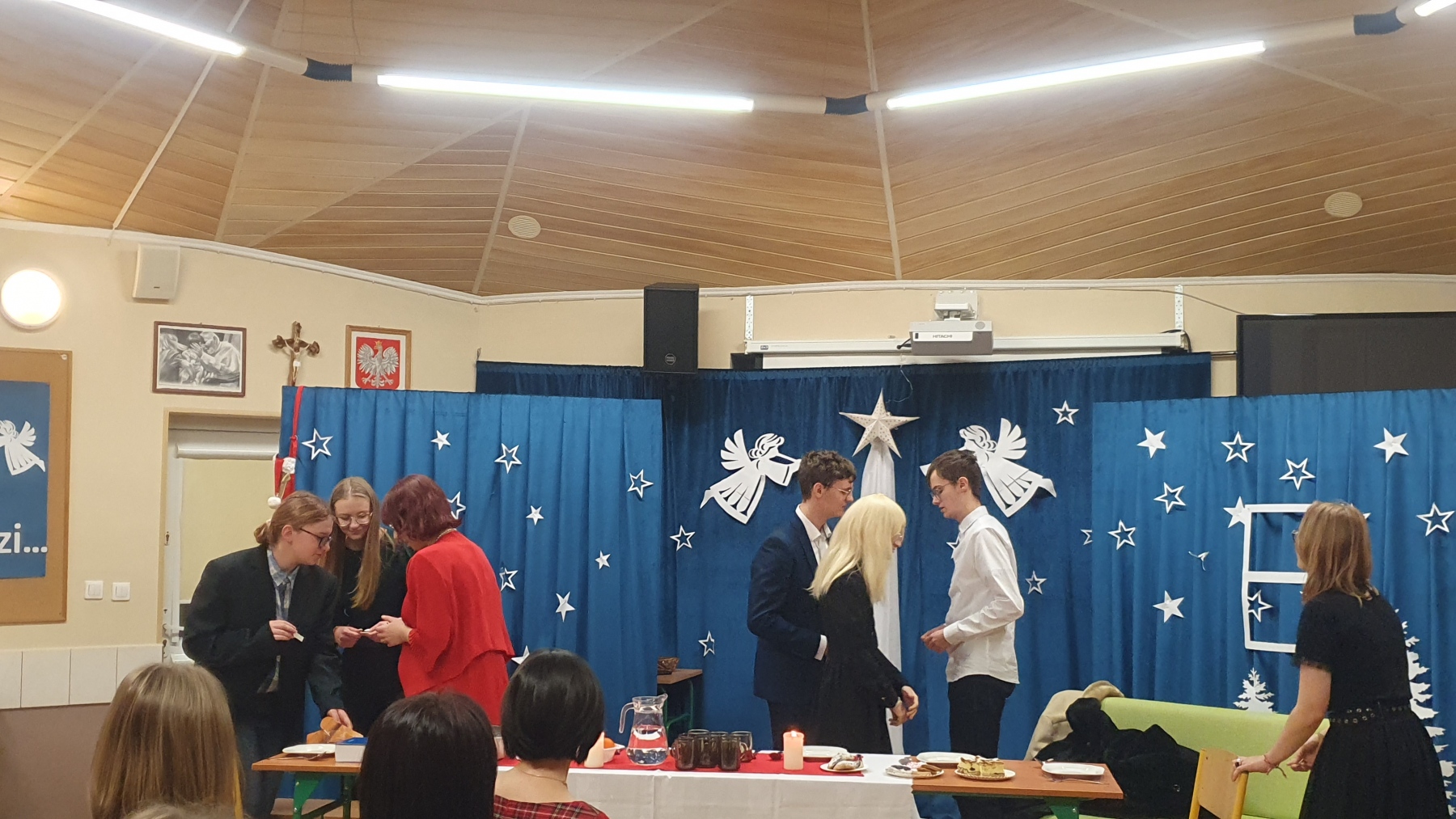 21 grudnia, w czwartek z okazji Swiąt Bożego Narodzenia nasza młodzież przedstawiła Jasełka. Było to bardzo ciekawe przedstawienie, które pokazało, że pomimo naszych niedoskonałości, mamy i powinniśmy mieć otwarte serca na drugiego człowieka, a w szczególności na tych, którzy są w różnych potrzebach. Piękna charakteryzacja, perfekcyjnie odtwarzane role, wprowadziły nas w atmosferę Świąt i skłoniły do cennych refleksji.