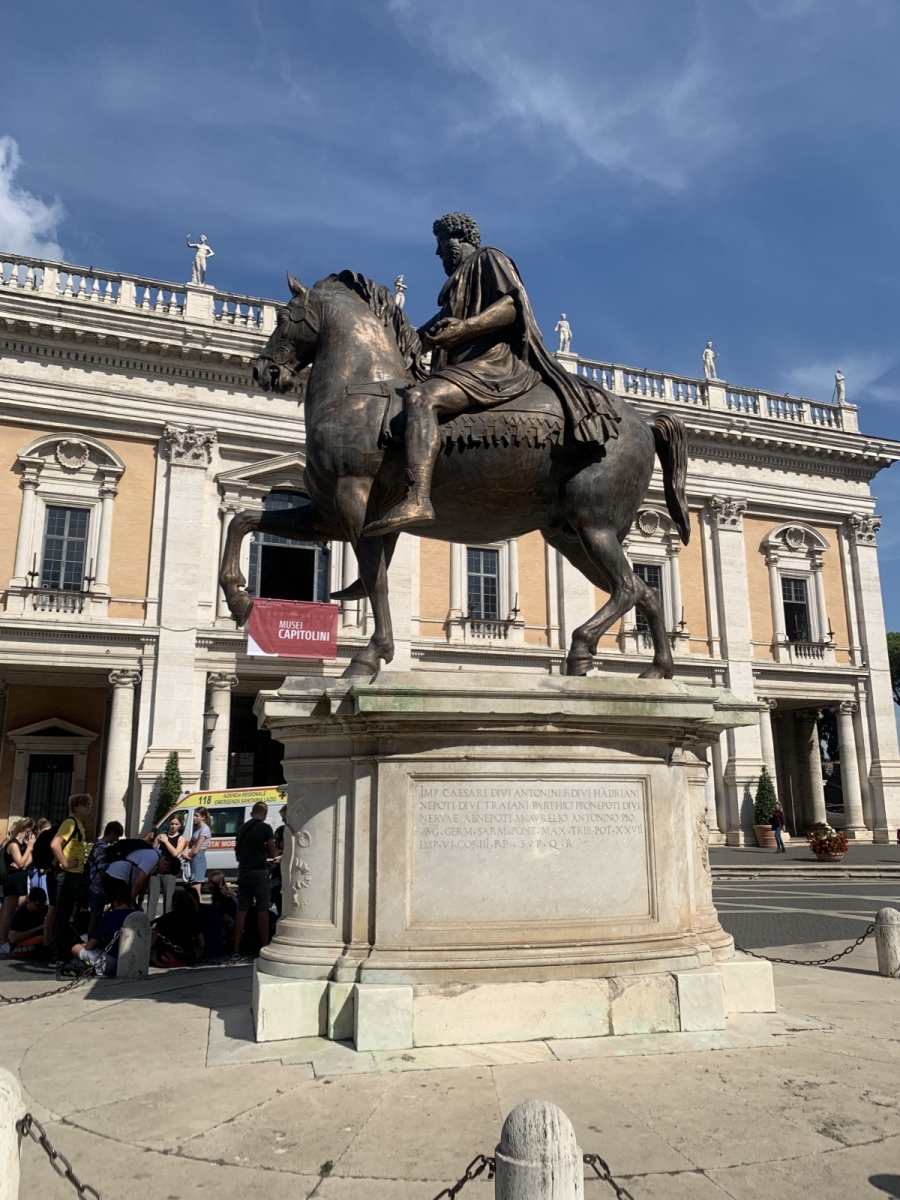 Zawędrowaliśmy także na rzymskie wzgórze- Kwirynał, znane przede wszystkim z niezwykle okazałego pałacu Prezydenta Republiki. Pałac ten był niegdyś rezydencja papieży, skąd codziennie udawali się oni do Watykanu, gdzie urzędowali. Na placu zaś znajduje się okazała fontanna z egipskim obeliskiem oraz Dioskurami poprzedzającymi swoje konie. Na Kwirynale znajduje się także kościół św. Andrzeja, gdzie znajdował się nowicjat jezuitów, do którego uczęszczał św. Stanisław Kostka.