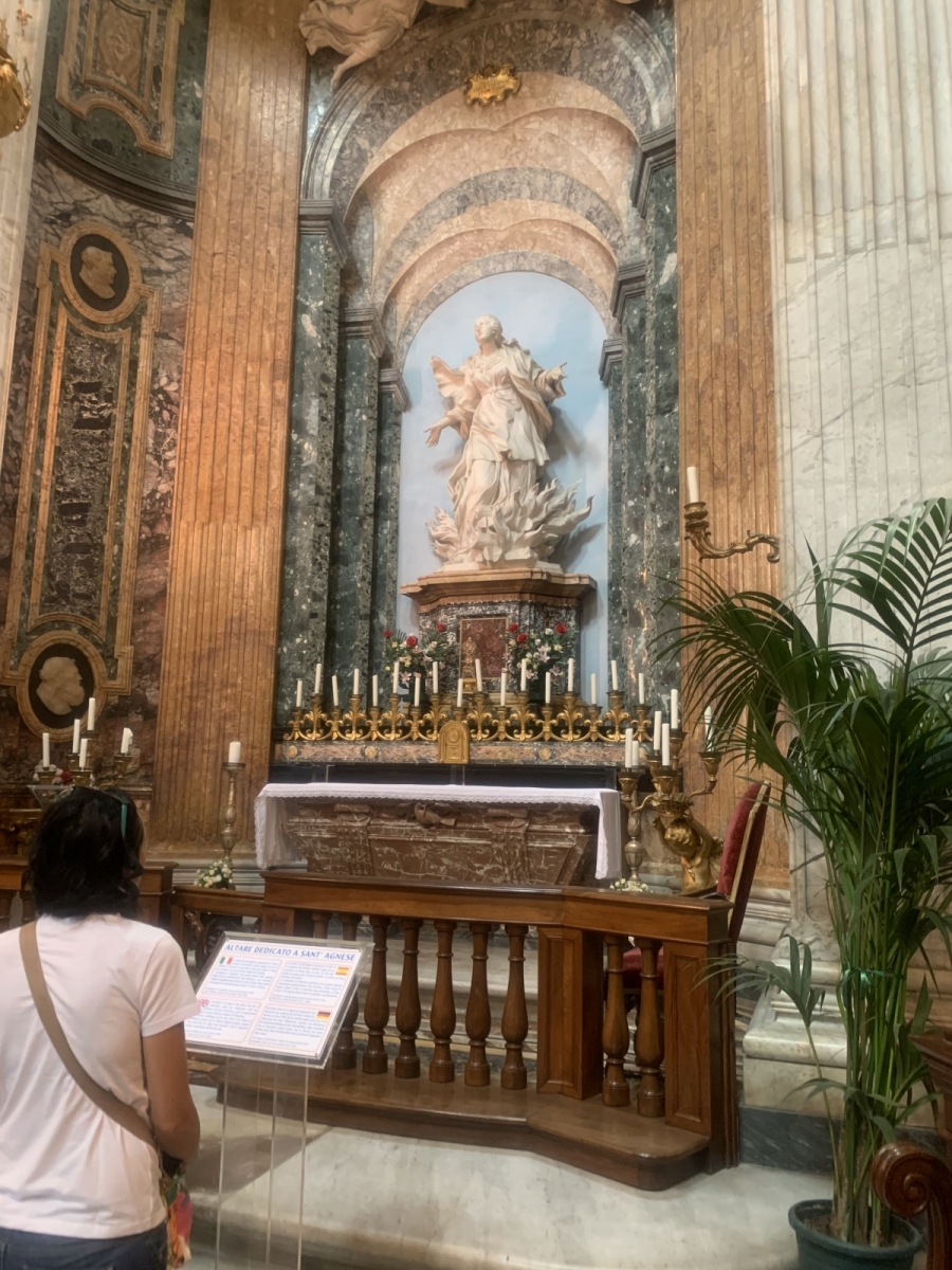 Piazza Navona chlubi się posiadaniem dwóch arcydzieł renesansowej sztuki , jakimi są przepiękne fontanny autorstwa mistrza Gian Lorenzo Berniniego. Przy Piazza Navona znajduje się także kościół św. Agnieszki, w którym przechowywane są jej relikwie. . Kościół zbudowany jest dokładnie w tym miejscu, gdzie św. Agnieszka, będąc młodą dziewczynka, poniosła męczeńską śmierć na Stadionie Domicjana.