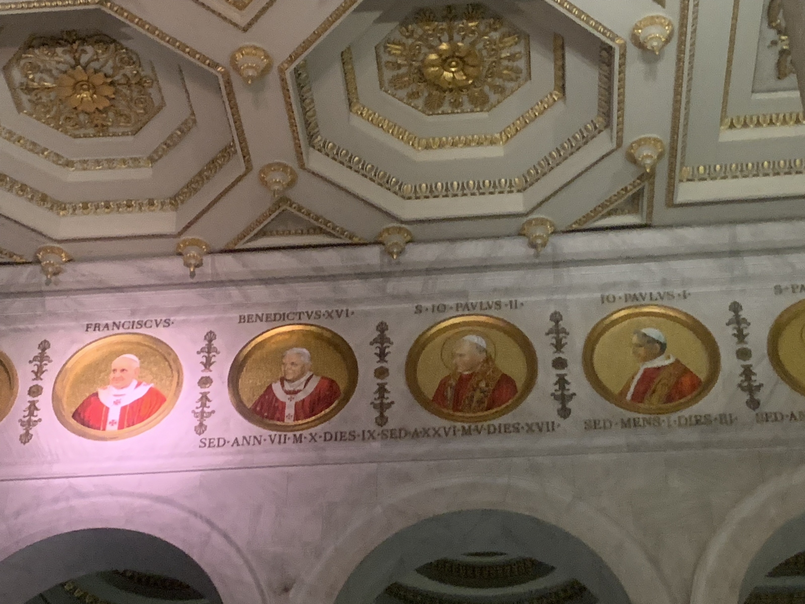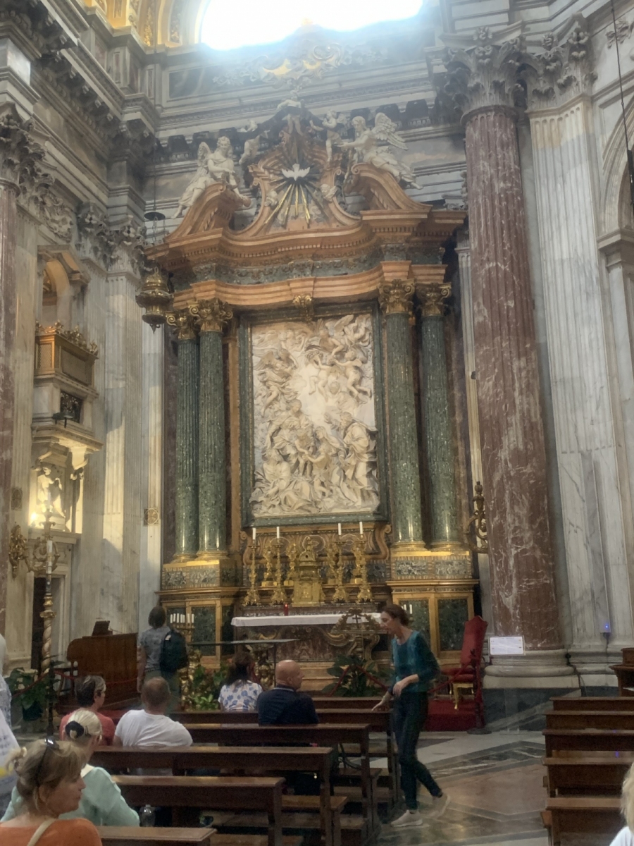 Z Kwirynału przenieśliśmy się na Eskwilin- rzymskie wzgórze które słynie przede wszystkim z monumentalnej bazyliki Santa Maria Maggiore– matki Bożej Większej zwana także bazyliką Matki Bożej Śnieżnej. We wnętrzu bazyliki zwróciliśmy szczególną uwagę na uderzające podobieństwo wizerunku Maryi do ikony częstochowskiej. Stąd udaliśmy się na ulicę Czterech Fontann, do placu o tej samej nazwie.