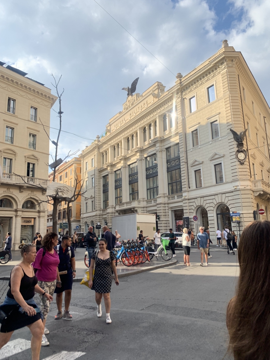 Gdy staniemy tyłem do schodów, przed zwiedzającymi otworzy się najbardziej elegancka ulica Rzymu, Via Condotti. Znajdują się tutaj butiki największych domów mody i inne bardzo drogie sklepy. Ale jest też historyczna kawiarnia (wystrojem i nastrojem przypomina krakowską Jamę Michalika) z XVIII wieku, w której bywali najwybitniejsi przedstawiciele epoki romantyzmu – także polscy – Krasiński, Norwid, Mickiewicz, którego portret wisi w jednej z sal). Nazywa się Cafe Greco, gdyż uważa się, że założyło ją przybyłe do Italii greckie małżeństwo