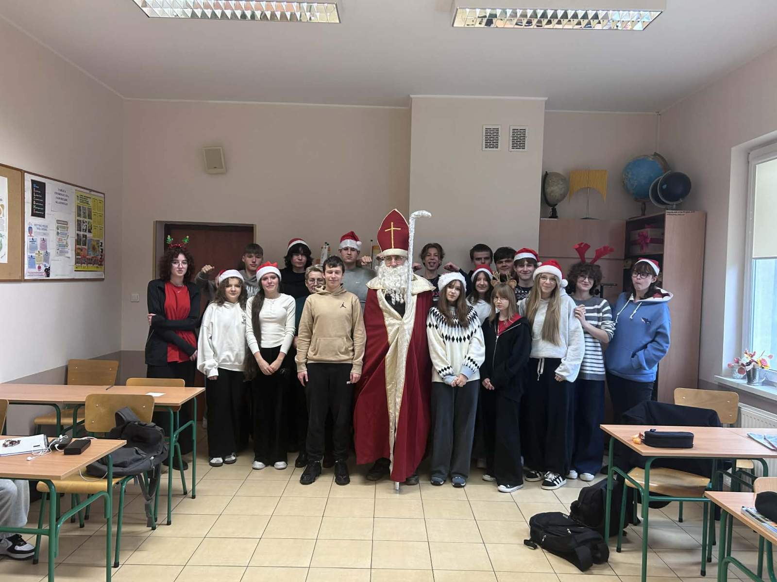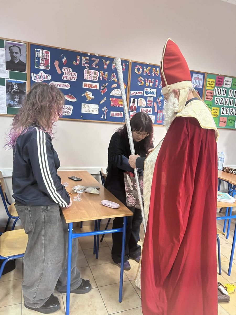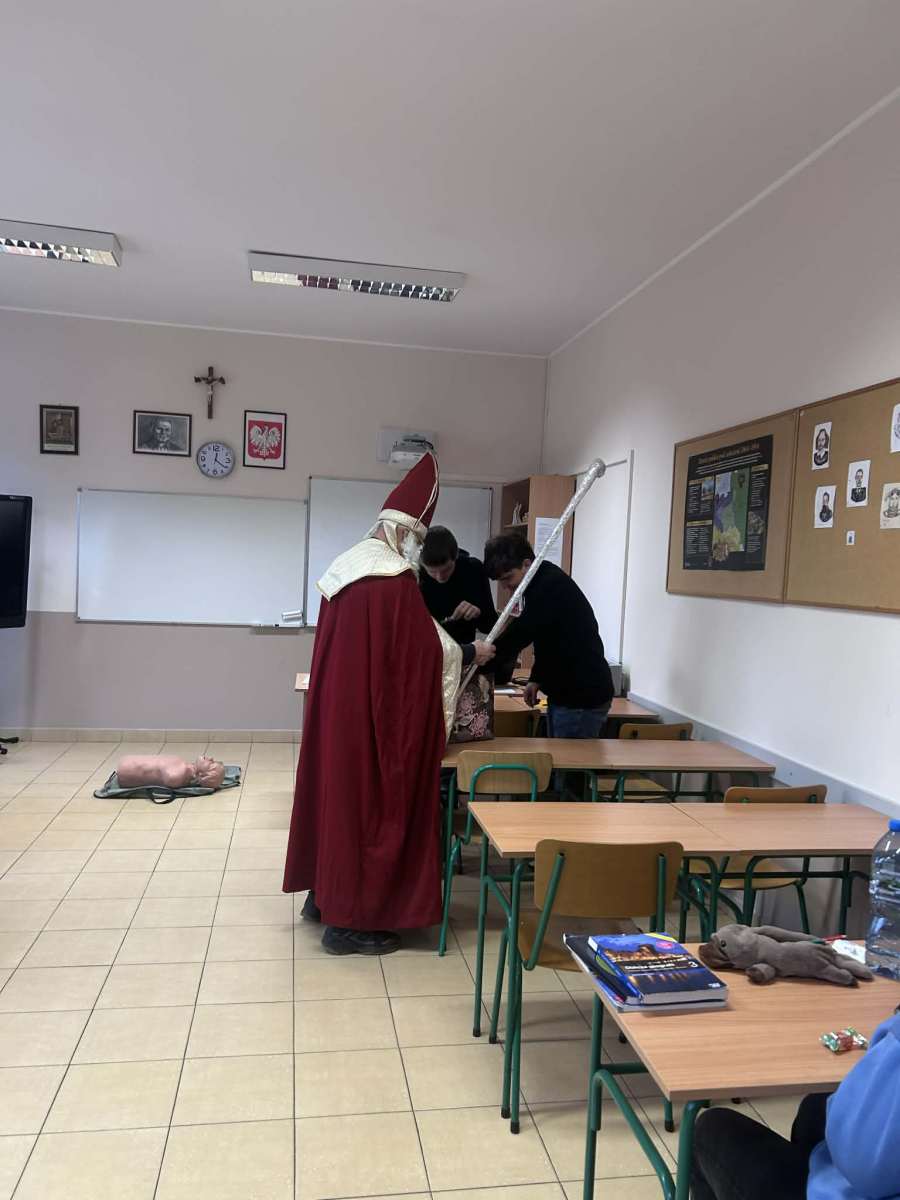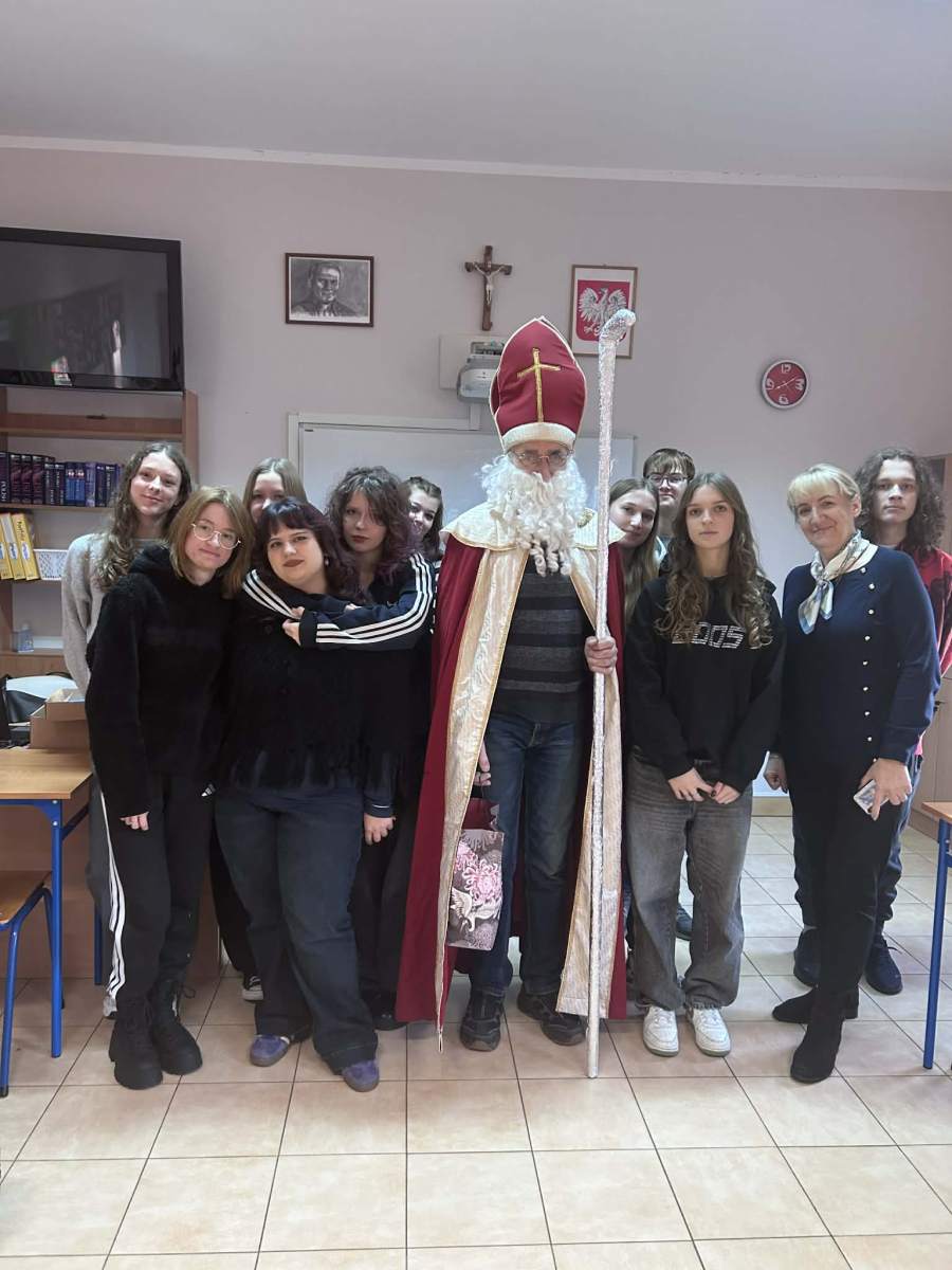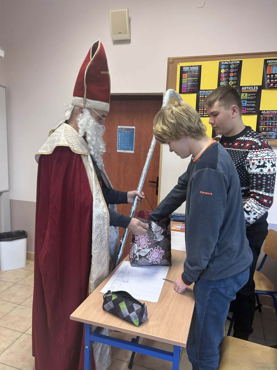 Dzisiejszy dzień był naprawdę wyjątkowy! Do naszej szkoły zawitał sam Święty Mikołaj, który z wielkim uśmiechem i jeszcze większym workiem słodyczy przeszedł przez wszystkie klasy. Każdy uczeń otrzymał od niego słodki upominek – bo przecież Mikołaj zawsze pamięta o tych, którzy cały rok byli grzeczni (lub prawie).